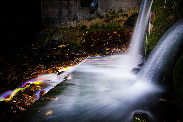 Glow Sticks And Waterfalls April 16th, 2013 Photographers Sean Lenz and Kristoffer Abildgaard came up with a great idea of of mixing long exposure nighttime photography, waterfalls, and glow sticks. The result is an incredible rainbow of beauty.