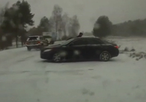 A Creative Way To Wreck A Car December 12th, 2013 Oh, your car is stuck? How about we give it a push then right as it starts rolling you jump out and let it roll away. Great plan! http://www.strangebeaver.com/wp-content/uploads/2013/12/snow-crash.mp4