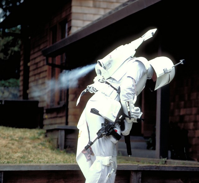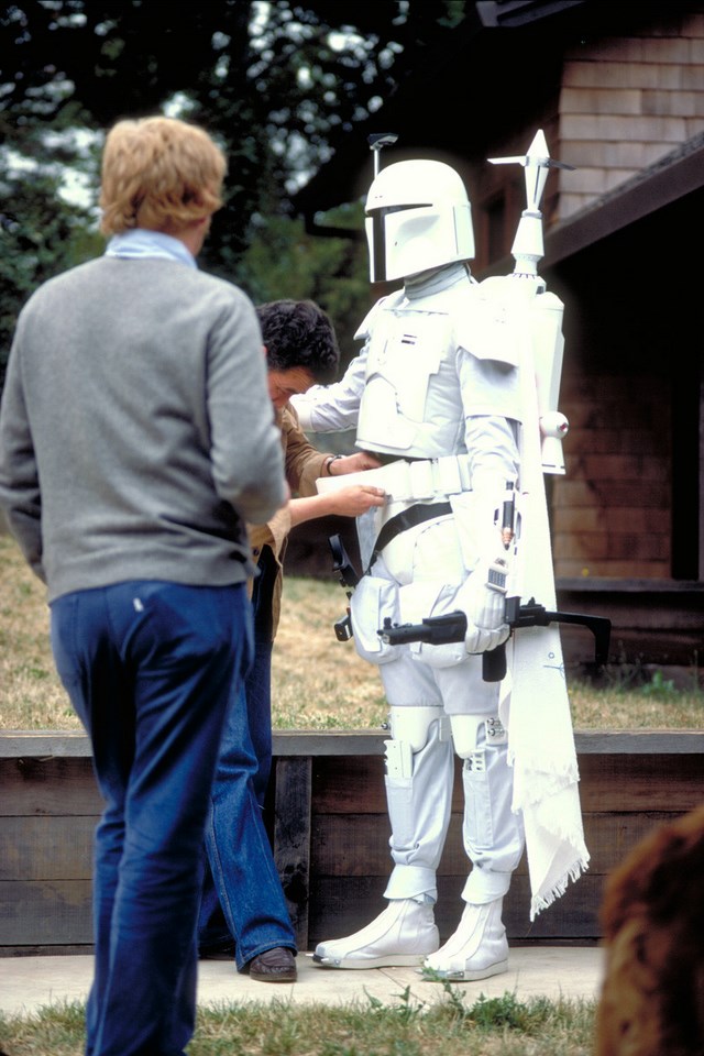Long before the great bounty hunter Boba Fett wowed audiences in Empire Strikes Back, they had to make the costume. Once the concept drawing was approved, the Lucas Arts team made this mock up suit to show it off (before it got a splash of color). Here are some cool behind the scenes shots from Skywalker Ranch when they tested the prototype of the costume.