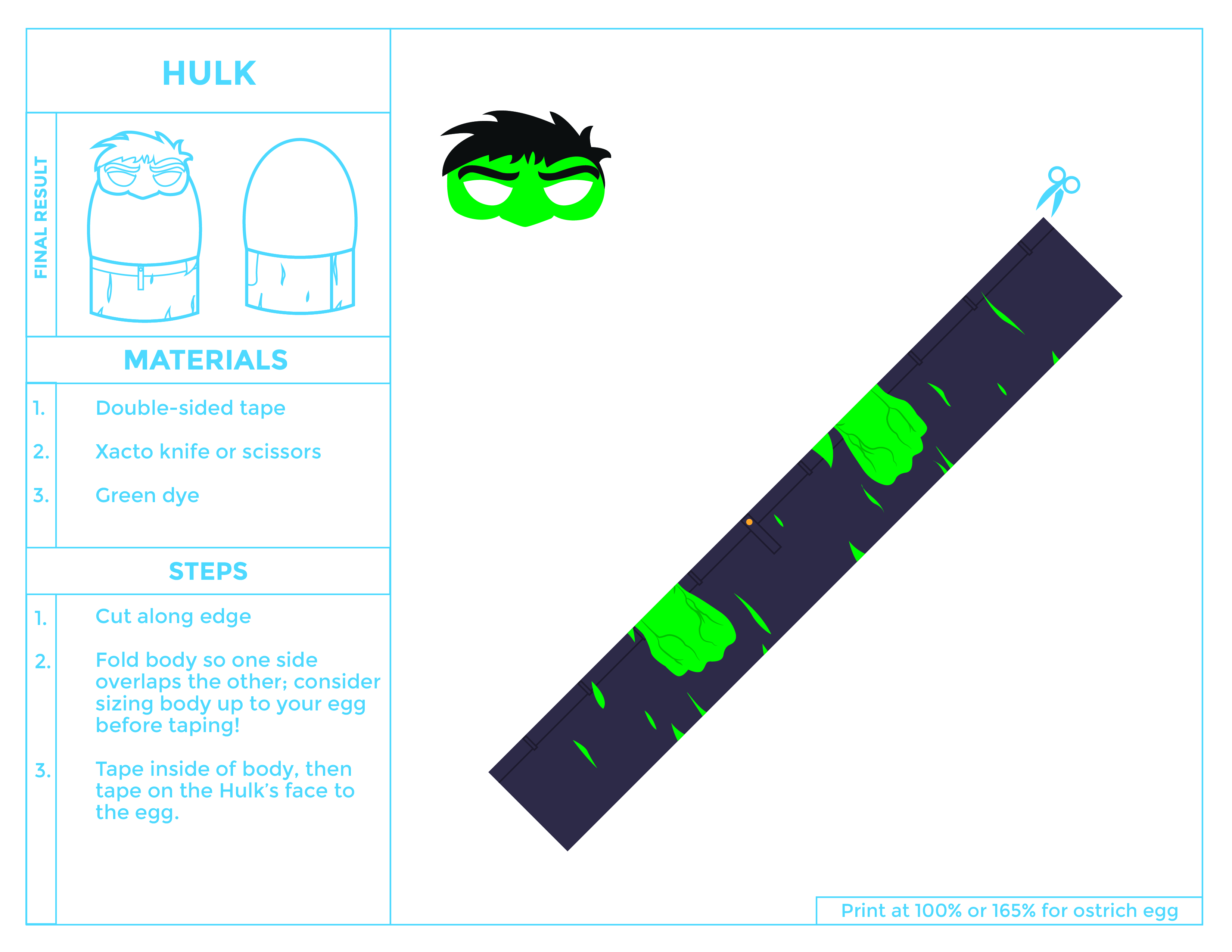 Take a look at the whole super gang! You may think these guys would be eggceedingly difficult to create, but with our printables they’re suprisingly easy. OVER easy even! 😉 Oh and that big green egg? Yeah that’s Hulk. We used an ostrich egg for scale.